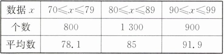 |数据x|70≤x≤79|80≤x≤89|90≤x≤99|
