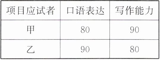 4. 学校广播站要新招1名广播员,甲、乙两名同学经过选拔进入到复试环节,参加了口语表达、写作能力两项测试,成绩(单位:分)如下表: