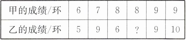 如果两人测试成绩的中位数相同,那么乙第四次射击的成绩(表中标记为“?”)可以是(