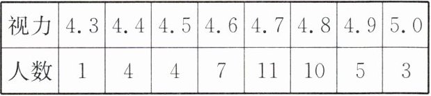 2.(2024 扬州市中考)第 8 个全国近视防控宣传教育月的主题是“有效减少近视发生,共同守护光明未来”。某校积极响应,开展视力检查。某班 45 名同学视力检查数据如下表:
