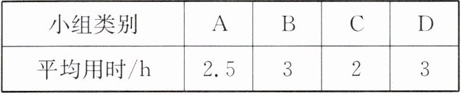 (3)若在某一周各小组平均每人参与活动的时间情况如下表: