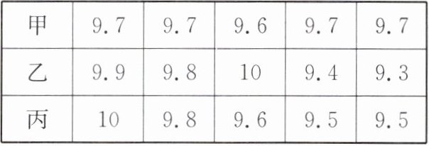 1. (2024德州市中考)甲、乙、丙三名射击运动员分别进行了5次射击训练,成绩(单位:环)如下表所示: