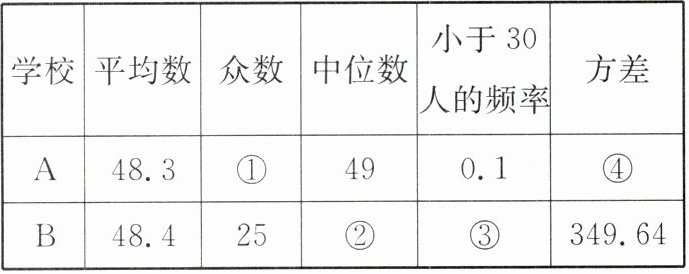 (2) 小明爸爸应该预约 A 学校.理由如下:因为两所学校的平均数接近,但 A 学校的方差小于 B 学校,即 A 学校预约人数比较稳定,所以小明爸爸应该预约 A 学校.