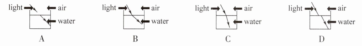 3. C 提示:细节理解题。根据"When light enters water, it slows and changes its original path. This process makes objects, such as a pencil sitting in a glass of water, seem to bend."可知,当光进入水中时,它的速度会减慢,并且会改变其原本的传播路径。这一过程使得物体,例如放在水杯里的铅笔等看起来好像发生了弯曲;再结合物理知识可知,C项正确。