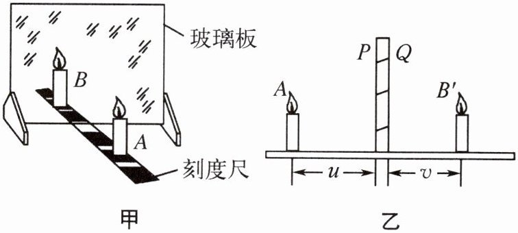 (3)如图甲所示,为了探究平面镜所成的像是虚像还是实像,小红找来一张白纸,把白纸放到 ______(填“A”或“B”)处,人从 ______(填“A”或“B”)处观察光屏,发现光屏上没有像,说明平面镜所成的像为虚像。