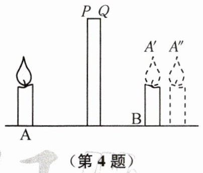 4. 做平面镜成像实验时,小柯透过玻璃看到了蜡烛A的两个清晰的像,他用未点燃的蜡烛B找到了这两个像,分别位于图中的A'和A''处,其中A'处的像是蜡烛A通过玻璃板的