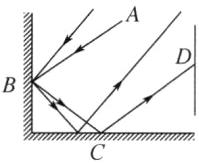 C 提示:当增大入射光线AB的入射角时,光线AB与竖直平面镜的夹角变小,由于反射角等于入射角,所以光线BC与竖直平面镜的夹角也变小,光线BC与水平平面镜的夹角将增大,此时射出的光线CD仍然与入射光线AB平行,由下图可知,此时光线CD与水平平面镜的夹角将增大,光线BC和CD的夹角将减小,D点将要向上移动。