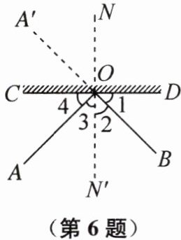 6. (2024·常州天宁期中)在探究光的反射定律实验中,老师把一块平面镜 CD 竖立在讲台上,坐在 A 点的乙同学通过平面镜看到了坐在 B 点的甲同学的眼睛,坐在 B 点的甲同学通过平面镜同样看到了坐在 A 点的乙同学的眼睛,如图所示,下列说法错误的是(