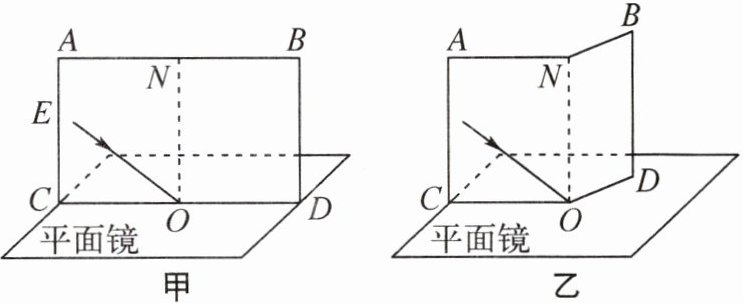 (4)在图甲中,若将纸板(连同激光笔)绕CD向后倾斜,入射光线仍能呈现在纸板上,且仍从E入射到平面镜的O点(图丙),此时与图甲情形对比,发生改变的有______(填字母,多选)。