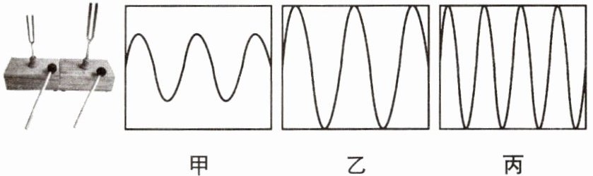 不同。甲、乙、丙三图中来自小音叉的图像是丙