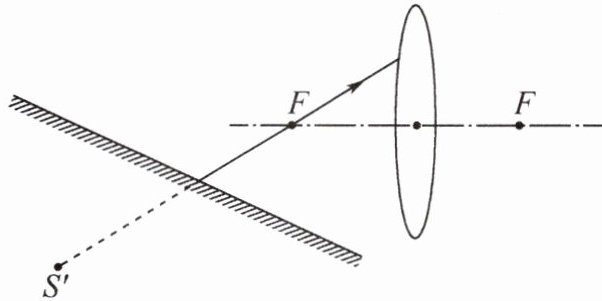 8.(2024·无锡江阴中考模拟)如图所示,S'是点光源 S 在平面镜中所成的像,S 发出的一条光线经平面镜反射后恰好经过凸透镜左侧焦点 F。要求: