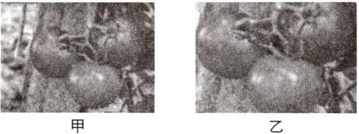 D.若不改变相机的焦距,拍摄甲照片时,镜头离番茄近一些