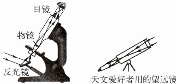 A 提示:显微镜的物镜和目镜都是凸透镜,把标本放在物镜的二倍焦距和一倍焦距之间,这样得到一个放大的实像,这个放大的实像正好成在目镜焦距以内,成正立、放大的虚像,所以显微镜的物镜成倒立、放大的实像,目镜成正立、放大的虚像;用望远镜观察远处物体时,物体通过物镜成的是倒立、缩小的实像,这个像通过靠近眼睛的目镜成正立、放大的虚像。