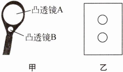 3.(2023·南京鼓楼期末)如图甲所示,光学元件由两个凸透镜A、B组成,A的直径为D,B的直径为d,将光学元件正对阳光,把一张白纸放在它的下方,在白纸上得到了如图乙所示的两个圆斑,圆斑的直径均为d,则下列说法正确的是( )