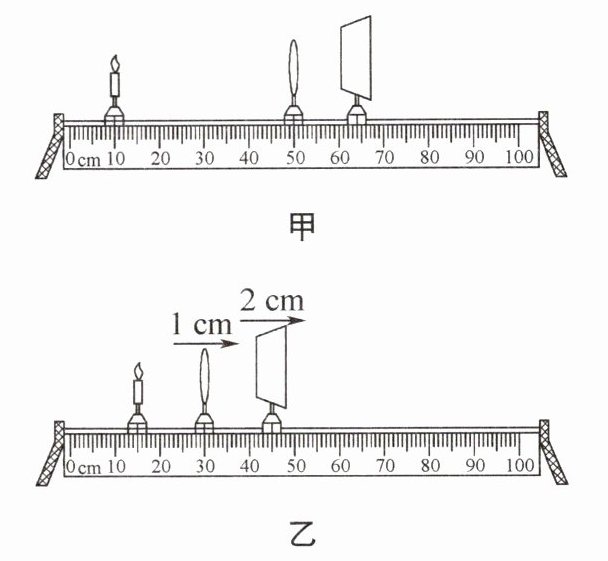 (2)如图甲,保持凸透镜位置不变,将蜡烛靠近凸透镜,为使光屏上再次呈现清晰的像,可将光屏