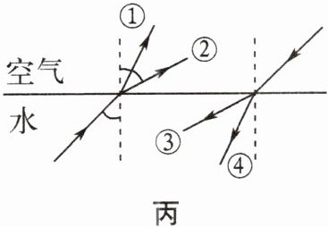 (3)如图乙所示,站在清澈的游泳池里,在岸上的人会发现泳池里人的腿变短,能描述此现象的光路是图丙中的______(填序号)。