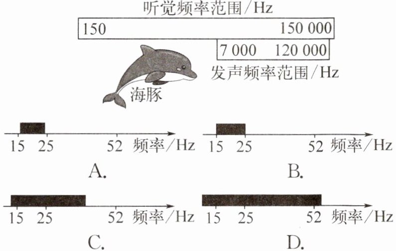 C 提示:根据图中海豚的听觉频率范围大于发声频率范围,正常灰鲸听不见 52 Hz 的声音,由此推断出 C 选项中的频率范围为正常灰鲸的听觉频率范围。
