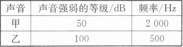 3. 在对环境声音的监测中,监测器测出的甲、乙两种声音的特性如下表。经对比,以下说法正确的是 (