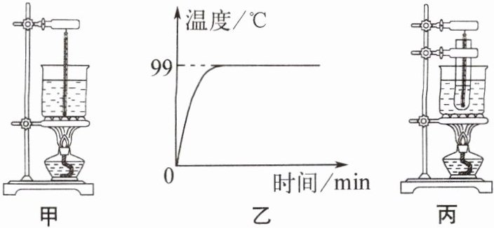 (4)小明在图甲所示的实验装置中增加一个试管和一个试管夹,并在试管中装入少量水(图丙),继续在原物理实验室做实验。实验时,用烧杯中的沸水给试管中的水加热。试管中的水温度不断升高,5 min后试管中的水温不变。
