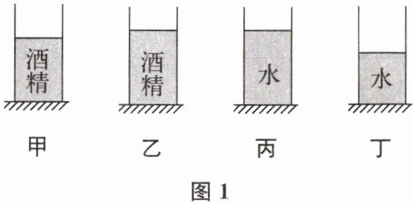 都相同。(2)实验室已提供了用规格相同的容器分别装有酒精和水的甲、乙、丙、丁4个样品,如图1所示。按实验要求,应选择