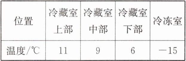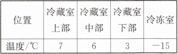 (填“A”“B”或“C”)位置。(4)电冰箱冷藏室内温度分布情况是