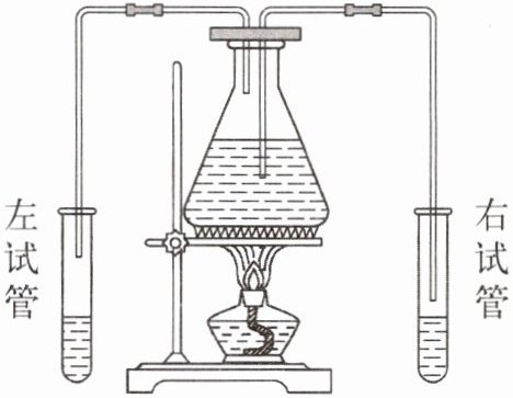 。加热锥形瓶,将瓶中沸腾时产生的水蒸气直接通入左试管中,水蒸气在其中几乎全部液化,待左管中的水面上升一段高度后,停止通入水蒸气,测出此时管中水的温度为$t_{1}$。将锥形瓶内的开水直接通入右试管中直至与左试管中水面相平