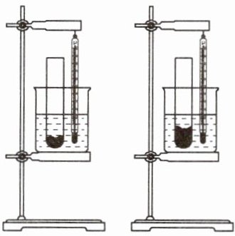 (2)小华根据自己的猜想,进行了如下探究:取不同质量的海波让它们刚好完全熔化,迅速放入质量相等、初温相同的两烧杯冷水中,如图所示。待海波刚凝固完毕后,迅速用温度计测出各自烧杯中水的温度,通过比较
