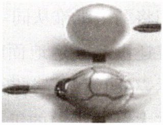 1. 用高速摄影机拍摄子弹打穿鸡蛋前后的两帧画面,如图所示,已知拍摄两帧画面的时间间隔为$6.0× 10^{-4}\ \text{s}$,则子弹的速度约为(