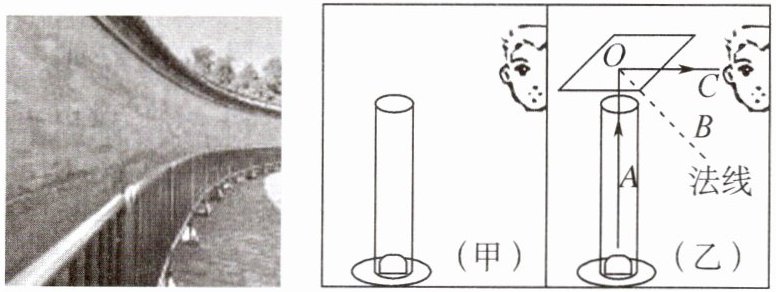 (2)在玻璃圆筒口正上方10 cm处安装一块平面镜,调整平面镜的角度直到眼睛能从镜面里看到表,如图乙所示,则∠COB是该光路的