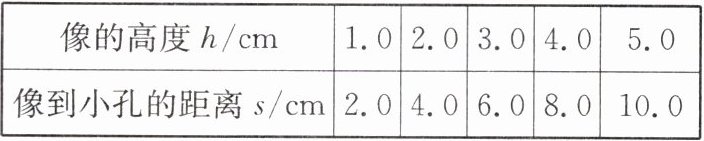 |像到小孔的距离s/cm|2.0|4.0|6.0|8.0|10.0|