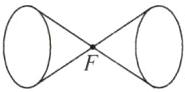 发散 先变小后变大 5 小于 提示:凸透镜对光线具有会聚作用,凹透镜对光线有发散作用。平行光通过图中虚线框(其中放置一块透镜)后,在光屏上形成一个直径比透镜大的圆形光斑,由于凹透镜对光线有发散作用,所以小明认为这个透镜一定是凹透镜。凸透镜对光有会聚作用,平行光会聚后继续传播会变成发散光,若光屏足够远,也可得到比透镜大的圆形光斑;将光屏逐渐靠近透镜,若能在光屏上观察到光斑直径先变小后变大,则为凸透镜,可知他的推断是错误的。如图所示,平行光经凸透镜折射后过焦点,即图中的F点,又因为光屏上光斑直径跟透镜等大,所以F点为透镜和光屏的中点,焦点到凸透镜光心的距离叫焦距,则$f=\frac{1}{2}×10\ \text{cm}=5\ \text{cm}$。光屏继续靠近透镜,当光屏离透镜8 cm时,光斑的直径会变小,小于透镜的直径。