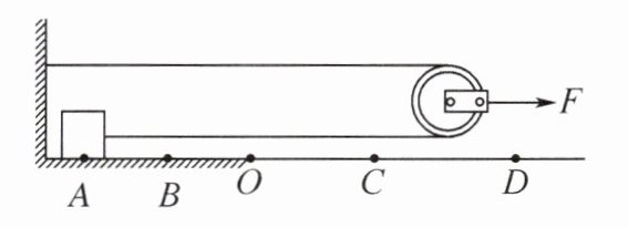 2. 如图所示,水平地面ABOCD,以O点为界,AO段是一种材质,OD段是另一种材质。细线一端系在物体上,绕过滑轮,另一端系在墙上,拉滑轮的水平力F恒为8 N,不计滑轮重、绳重及绳子与滑轮间的摩擦。物体经A点开始计时,此后各段路程及用时见下表。下列说法正确的是 (