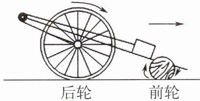 C 提示:车子后轮是一个轮轴,推力作用在轮上,绳子上的拉力作用在轴上,该装置为省力机械;$W_{\text{有用}}=Gh=2000\ \text{N}×0.8\ \text{m}=1600\ \text{J}$,$W_{\text{总}}=Fs=1000\ \text{N}×2\ \text{m}=2000\ \text{J}$,$\eta=\frac{W_{\text{有用}}}{W_{\text{总}}}×100\%=\frac{1600\ \text{J}}{2000\ \text{J}}×100\% =80\%$;$W_{\text{额外}}=W_{\text{总}}-W_{\text{有用}}=2000\ \text{J}-1600\ \text{J}=400\ \text{J}$,不计绳重、滑轮与绳子间的摩擦,$f=\frac{W_{\text{额外}}}{s}=\frac{400\ \text{J}}{2\ \text{m}}=200\ \text{N}$;木箱从斜面顶端下滑时,与木箱从斜面底端到顶端时的运动方向相反,将会驱动引重车向左运动。