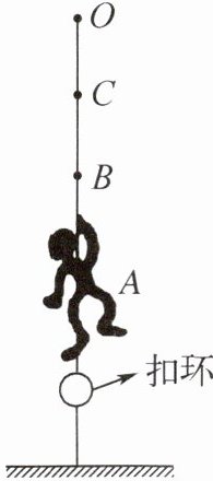 2. “反向蹦极”是一项比蹦极更刺激的运动。如图所示,弹性轻绳的上端固定在O点,拉长后将下端固定在体验者的身上,并与固定在地面上的扣环相连。打开扣环,人从A点由静止释放,像火箭一样被“竖直发射”,经B点时速度最大,最高能到达C点。对此过程,下列描述正确的是(