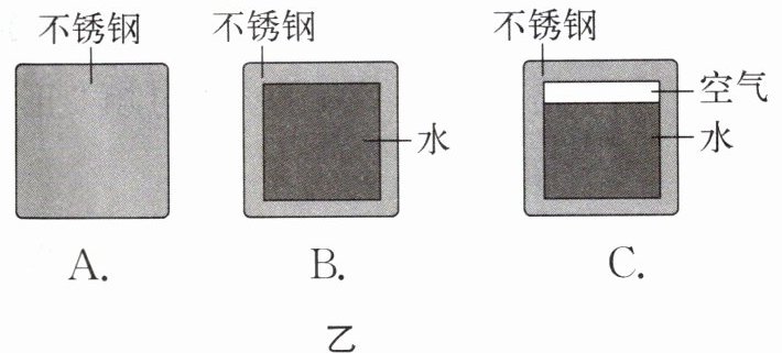 (4)市场上有一种可重复利用的不锈钢“冰块”,既可以给饮料降温又不影响饮料原本的口味,图乙中三种设计最合理的是