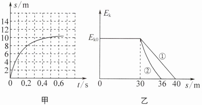 (4)储能效率是指汽车正常行驶时关闭发动机,直至汽车停止的过程中,通过发电机将动能转化为电能的效率。某次测试储能效率时,先让汽车正常行驶,然后关闭发动机,分别测出开启和关闭再生制动器两种情况下,汽车通过的路程s与对应的速度大小v,计算出动能Eₖ,画出Eₖ随s变化的图像如图乙所示。则图中表示开启再生制动器的图线是