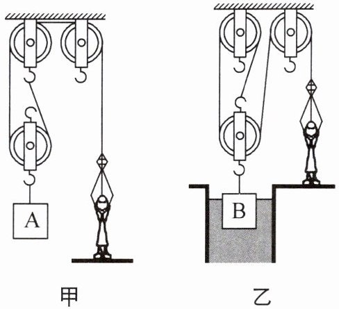 (2)利用图甲所示滑轮组提升物体$A$时,人对地面的压强是多少?