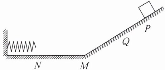3. 如图所示,粗糙程度相同的斜面与水平面在M点相连,弹簧左端固定在竖直墙壁上,弹簧处于自由状态时右端在N点,小物块从斜面的P点由静止滑下,与弹簧碰撞后又返回到斜面上,最高到达Q点。下列说法正确的是(