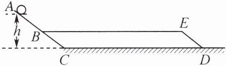 4. 体积相同的铜球、铁球(ρ铜>ρ铁)从距地面高度为h的光滑斜面顶端同时滚下,分别进入不同的光滑轨道,到达D点(铜球沿轨道ABED、铁球沿轨道ABCD,且两水平轨道足够长),则下列说法错误的是(