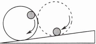 1. 取一个很轻的圆柱形盒盖,在内侧黏上一个较重的铁球,如图所示,放置在不太陡的斜面上,松开手会发现盒盖向上滚动,关于滚动过程,下列说法正确的是(