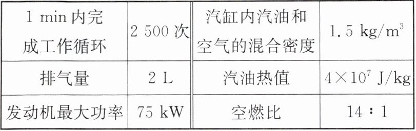 |1min内完成工作循环|2500次|汽缸内汽油和空气的混合密度|$1.5kg/m^3$|