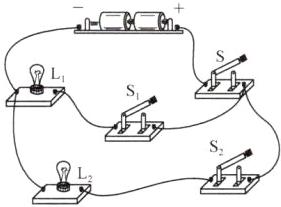 |闭合开关S,断开$S_1、$$S_2$|灯$L_1、$$L_2$均不发光|