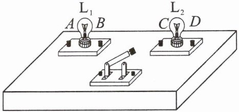 10. 物理课上,老师给同学们出示了一个有盖的木盒,盒盖上可看到两只灯泡和一个开关(导线的连接情况隐藏在盒内),如图所示。