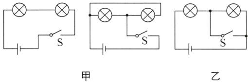 (3)在连接好电路的最后一根导线时,两灯都发光,说明是通路;当闭合开关时,其中一盏灯熄灭,而另一盏灯仍是通路,说明开关闭合时这盏灯短路,如图乙所示。