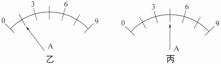 (3)图乙中A表大量程是0~9A,一个大格代表3A,分度值是1.5A,示数为1.5A,换用小量程测量时的示数也是1.5A,在图丙中示数为1.5A,分为3个小格,小量程的分度值是0.5A,故大量程的分度值是小量程分度值的3倍,大量程为0~9A,小量程为0~3A。