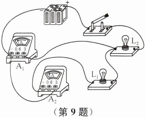 9. 在“用电流表测电流”的实验中,某同学连接的电路如图所示。