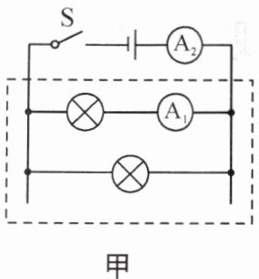 个小灯泡。(2) 若小明观察到两个电流表指针偏转如图乙所示,请你推测虚线框内有
