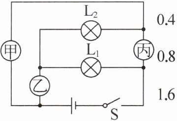 )A.当灯$L_1$和$L_2$串联时,甲、乙、丙示数可能分别为0.8 A、1.6 V、0.4 V