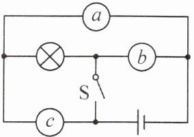 B 提示:若a为小灯泡,b为电流表,c为电压表,开关闭合后,b接在了电源的两端,电源短路;若a为电流表,b为小灯泡,c为电压表,开关闭合后,为并联电路,电压表测电源电压,电流表测原来小灯泡所在支路的电流,两灯都发光;若a为电压表,b为电流表,c为小灯泡,开关闭合后,b接在电源两端,电源短路;若a为小灯泡,b为电压表,c为电流表,开关闭合后,会把原来的小灯泡短路,只有新接的小灯泡发光。