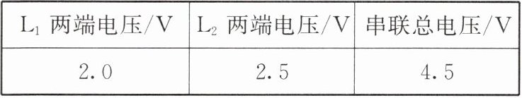|$ L_1$两端电压/V |$ L_2$两端电压/V | 串联总电压/V |
